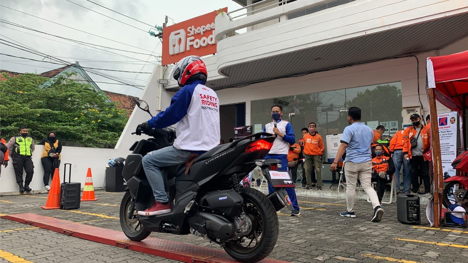 Keseruan meningkat saat tim Safety Riding Astra Motor Jawa Tengah bersama dengan dealer Pratama Kurnia Kasih Semarang memberi tantangan kepada driver Shopee Food untuk membuktikan kemampuan dasar berkendaranya dalam hal keseimbangan pada kecepatan ekstra rendah namun tetap stabil. Dalam sesi ini diharapkan bagi driver yang masih gagal melalui tantangan, dapat meningkatkan lagi keterampilan dasar berkendaranya.(aln)