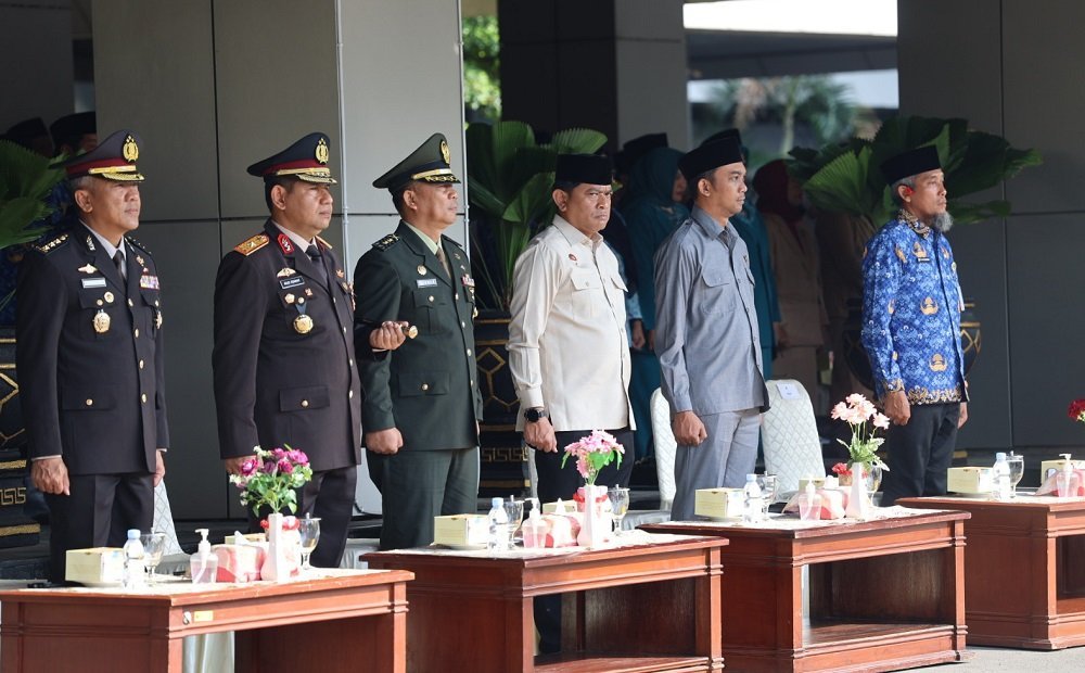 Upacara tersebut dihadiri oleh berbagai elemen masyarakat, termasuk aparatur sipil negara (ASN), TNI, Polri, tokoh agama, tokoh masyarakat, serta pelajar dan mahasiswa.
