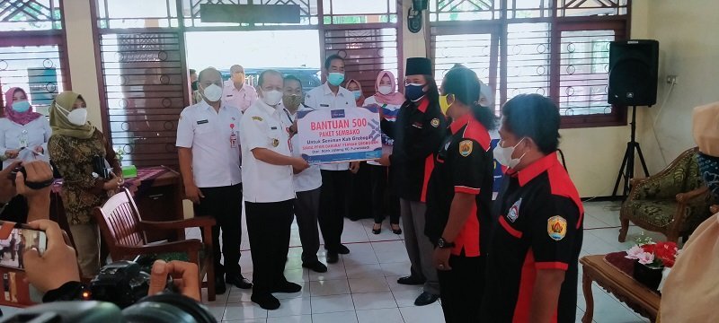 Bantuan paket sembako untuk para pekerja seni ini berasal dari Bank BPD Jateng Cabang Purwodadi sebanyak 500 paket dan PT BPR BKK Purwodadi sebanyak 500 paket.