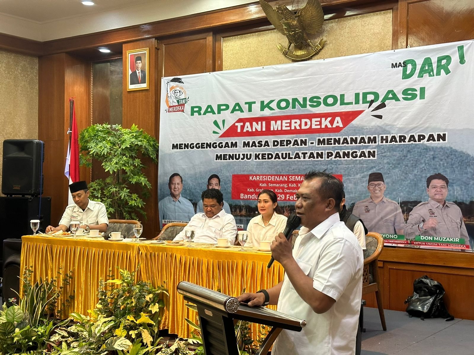“Pak Daryono mendapatkan dukungan penuh dari DPC Tani Merdeka seluruh eks-Karesidenan Semarang. Beliau sosok yang tepat memimpin masyarakat Jateng, dekat dengan masyarakat petani dan pedagang, punya track record yang baik bagi kemajuan masyarakat Jateng,” ujarnya saat Rapat Konsolidasi Organisasi Tani Merdeka di Hotel Amanda Hill, Bandungan, Kabupaten Semarang, kemarin.