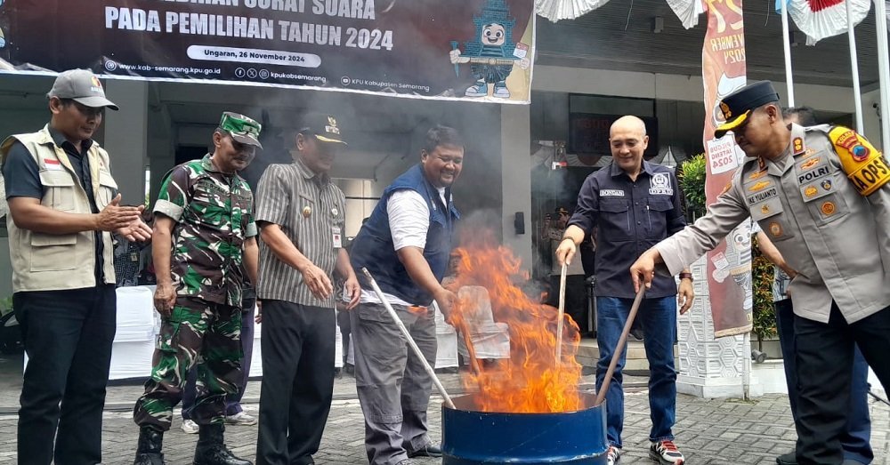 “Artinya untuk Pilgub Jateng 2024 ini, total surat suara ada 828.344 dikurangi 283 lembar, sedangkan untuk surat suara Pilbup Kabupaten Semarang 2024 ada 828.344 dikurangi 210 lembar surat suara yang dimusnahkan karena rusak dan sisa ini. Sedangkan untuk cadangan surat suara di tiap-tiap Tempat Pemungutan Suara (TPS) ini jumlahnya ada 2,5 persen,” terang dia.