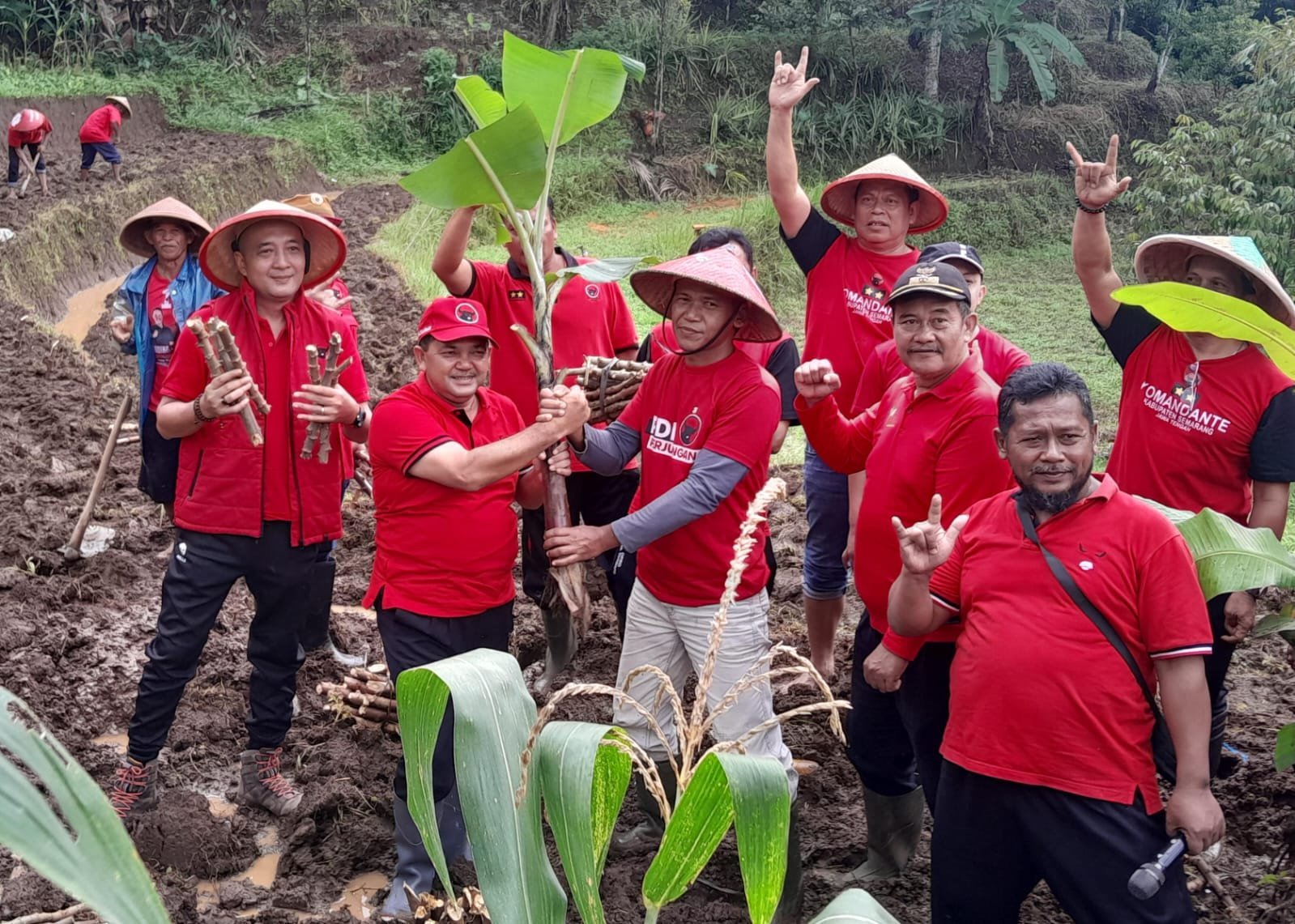 Mengawali kegiatan yang diadakan se-Kabupaten Semarang, diadakan penanaman di Desa Lerep, Kecamatan Ungaran Barat, Kabupaten Semarang, Jumat (17/1/2025). Kegiatan ini diikuti seluruh pengurus partai, kader, organisasi sayap, anggota Fraksi PDIP DPRD Kabupaten Semarang, dan kelompok tani Desa Lerep.