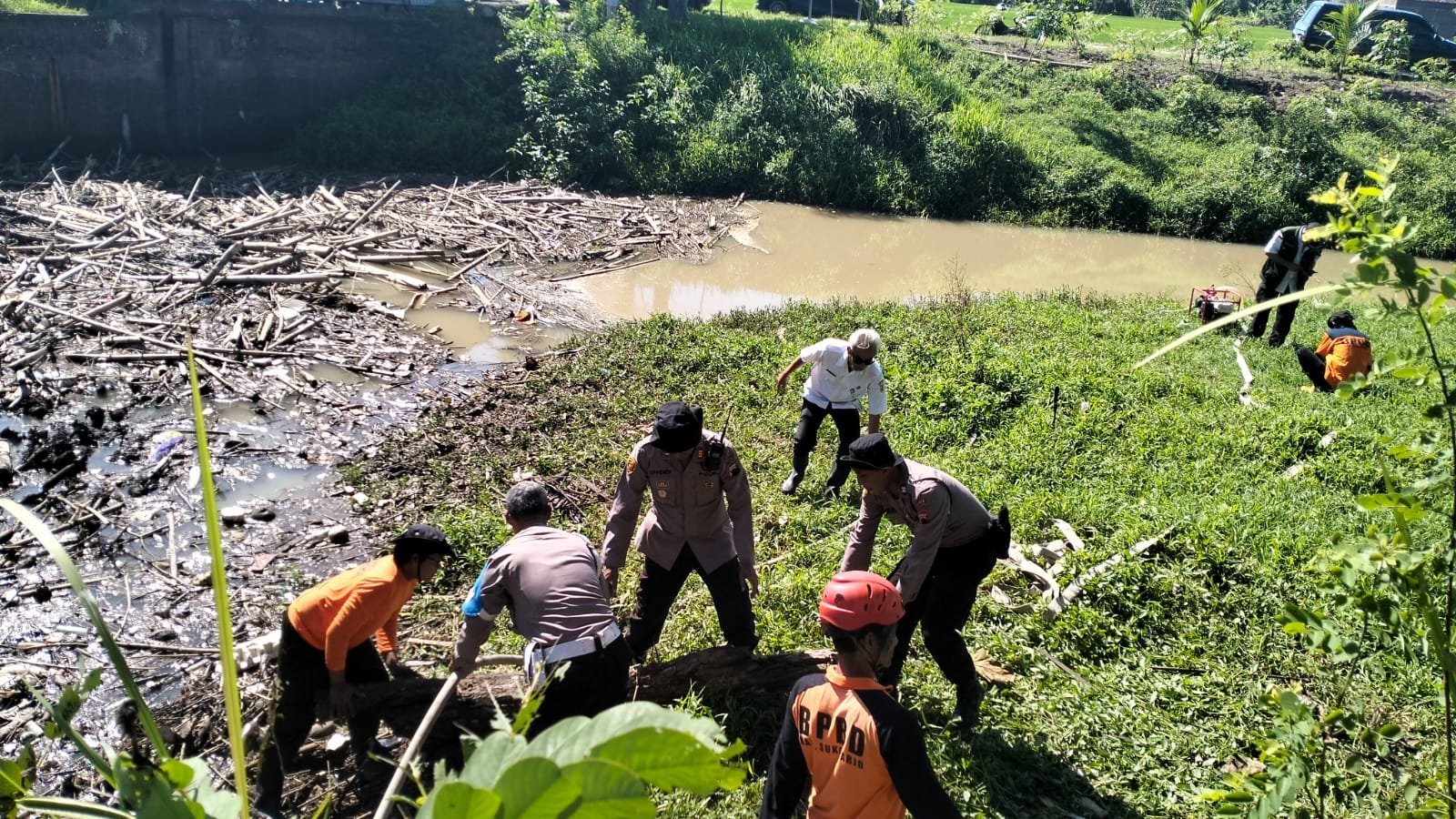 Kegiatan ini melibatkan personel gabungan dari Polsek Weru, Koramil 05 Weru, BPBD Kabupaten Sukoharjo, Balai Wilayah Sungai Bengawan Solo (BWBS), serta relawan dari komunitas Sakdermo Tetulung Weru.