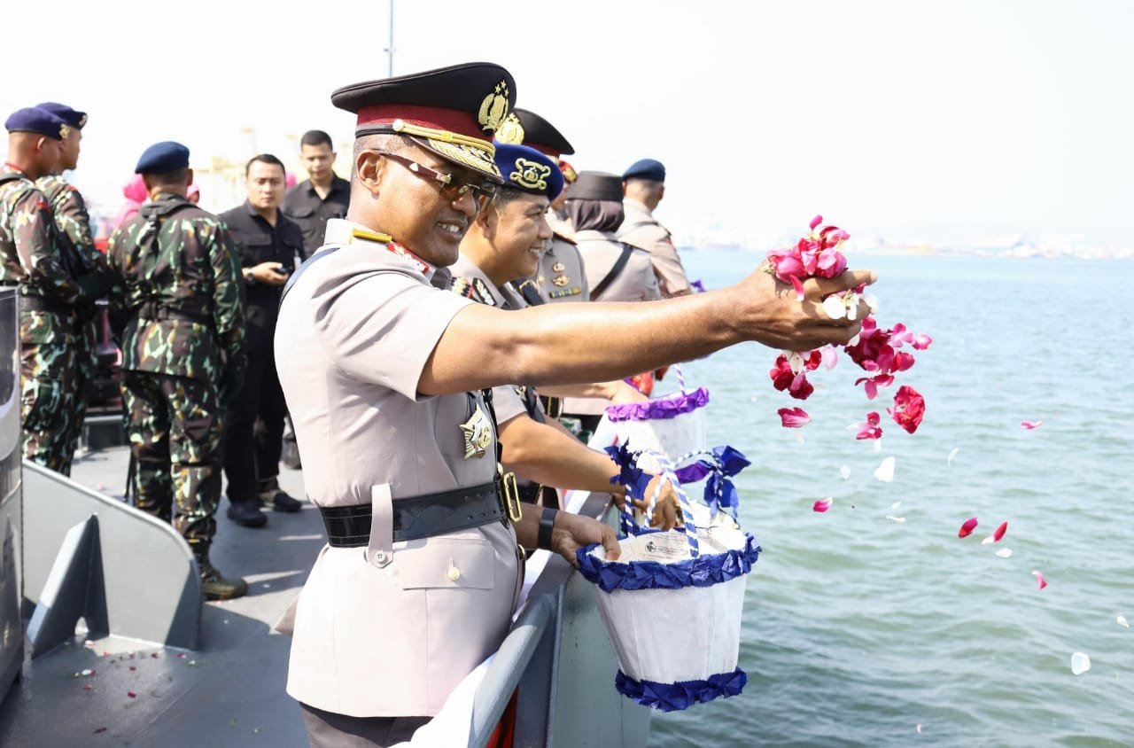 Dijelaskan, kegiatan tabur bunga di laut ini bukan hanya tradisi seremonial, melainkan juga penegasan komitmen kuat Korps Bhayangkara.