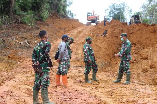 JATENGPOS.CO.ID, KAPUAS HULU – Sasaran fisik, pekerjaan pembangunan pembukaan jalan, pembuatan jembatan serta gorong-gorong oleh Satgas TMMD ke-110 Kodim 1206/PSB seluruhnya hampir rampung. Program TMMD Ke 110 Kodim 1206/PSB di laksanakan di Dusun Tintin Kemantan, Desa Hulu Pengkadan, Kecamatan Pengkadan, Kabupaten Kapuas Hulu. Sabtu, (27/03/2021)