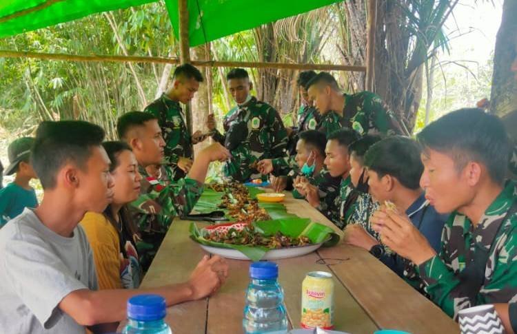 Sambil makan bersama, salah satu pemuda setempat Ardi (27) dalam percakapannya menyampaikan bahwa makan bersama sebagai ucapan terima kasih, kepada TNI yang sedang membangun jalan, jembatan dan fasilitas lain di desa.