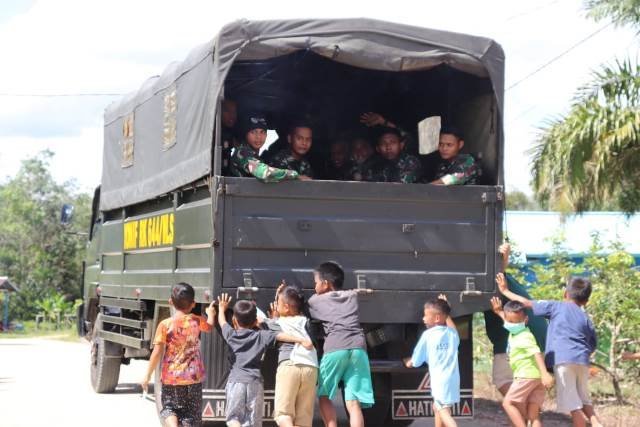Taridi menambahkan, kami merasa senang juga bangga dengan hadirnya para prajurit Satgas TMMD selama bekerja di Dusun Sukarami dan Dusun Tintin Kemantan.