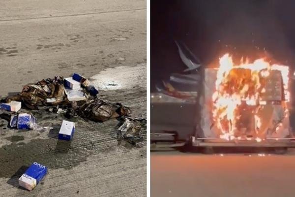 Ponsel merek vivo, tipe Y20 terbakar di apron parkir Bandara Internasional Hong Kong pada 11 April.
