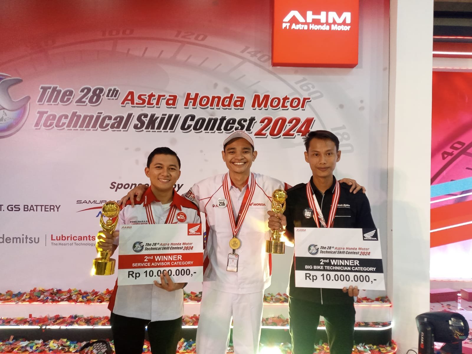 Setelah melalui seleksi panjang dan ketat, 2 (dua) teknisi dari Main Dealer Astra Motor Jateng berhasil meraih prestasi unggul pada AHM Technical Skill Contest 2024 kali ini dimana Tri Wahyudi berhasil meraih Juara 2 untuk kategori Service Advisor dan Dwi Sofianto berhasil meraih Juara 2 untuk kategori Teknisi Big Bike.