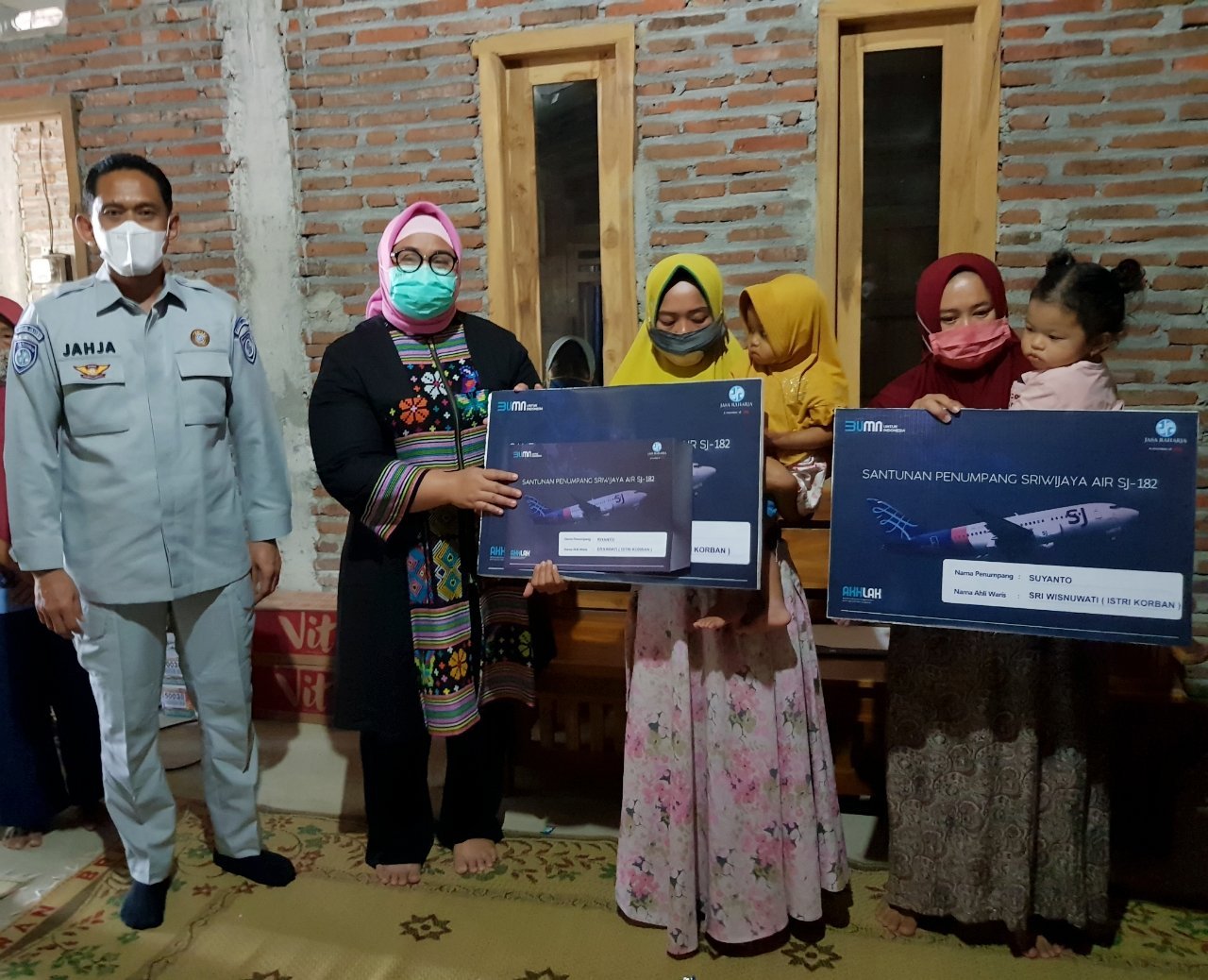 JATENGPOS.CO.ID, SEMARANG – Pada Sabtu (30/1) Jasa Raharja Cabang Utama Jawa Tengah menyerahkan santunan untuk korban Sriwijaya Air SJ-182 di wilayah Sragen yang berjumlah 2 orang sesuai dengan daftar manifest penerbangan pesawat Sriwijaya Air SJ-182, korban atas nama Suyanto dan Riyanto yang kedua merupakan Kakak Beradik, Suyanto beralamat di Girimulyo, RT. 18/00, Kel. Katelan, Kec. Tangen, Kab. Sragen dan Riyanto beralamat di Tengaran RT.17/06 Ds. Katelan, Kec. Tangen, Kab. Sragen.Santunan Korban an. Suyanto dan Riyanto diserahkan langsung kepada masing-masing Istri korban yang bernama Sri Wisnuwati selaku Ahli Waris dari Suyanto dan Ernawati selaku Ahli Waris dari Riyanto.