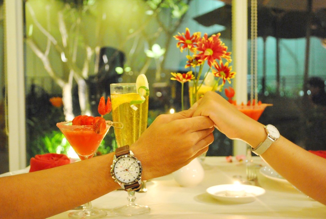 Pasangan valentine, akan disuguhkan dengan makan malam romantis di area restoran dengan ragam pilihan menu spesial.Diantaranya ada menu berupa Mix Chef Salad dan untuk menu utama serta menu penutup Puding Leci.