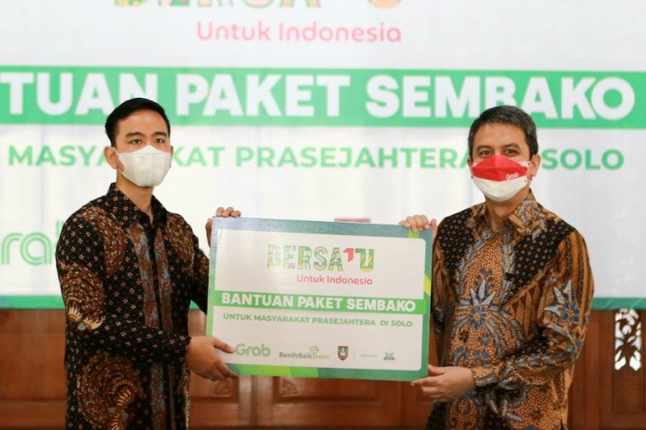 Donasi diberikan oleh President of Grab Indonesia, Ridzki Kramadibrata kepada Wali Kota Surakarta, Gibran Rakabuming Raka, yang kemudian akan disalurkan ke kuli gendong pasar dan masyarakat prasejahtera di Surakarta.