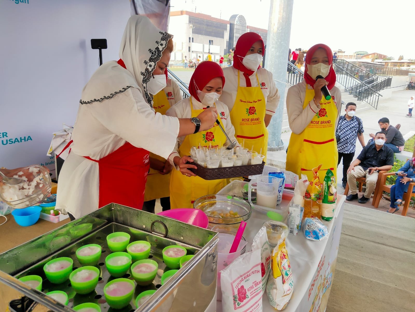 Mbak Ita menularkan teknik masak tanpa minyak goreng pada pengunjung Festival Pajangan (Pusat Jajanan Semarangan) di Alun Alun Kota Semarang, Komplek Pasar Johar.