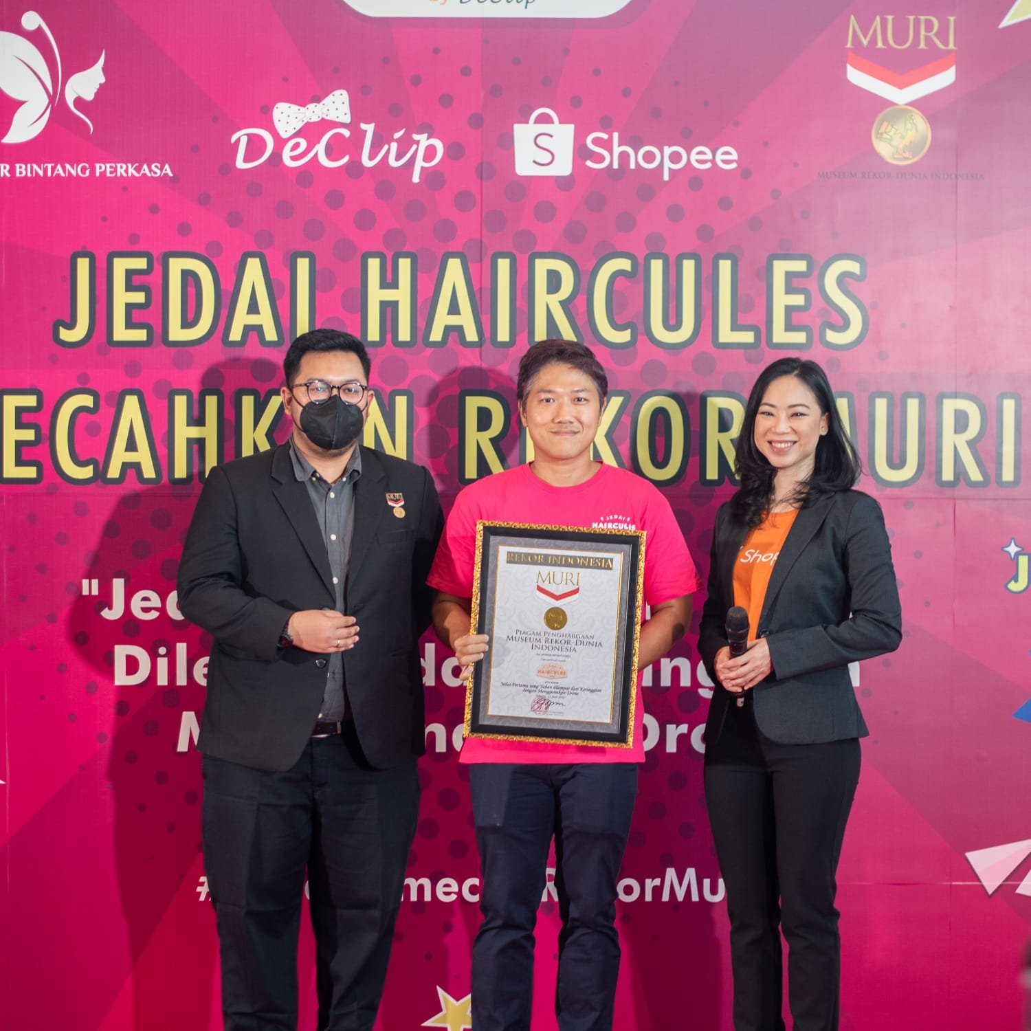 Setelah menggemparkan netizen dengan membuktikan ketahanan material setelah digilas menggunakan mobil, kini Jedai Haircules resmi mendapatkan penghargaan MURI (Museum Rekor Dunia Indonesia) yang diresmikan pada hari Minggu (12/6/2022) di Pakuwon Tower. Selain perwakilan MURI, acara tersebut juga turut mengundang perwakilan dari Shopee Indonesia untuk menyaksikan momentum tersebut.