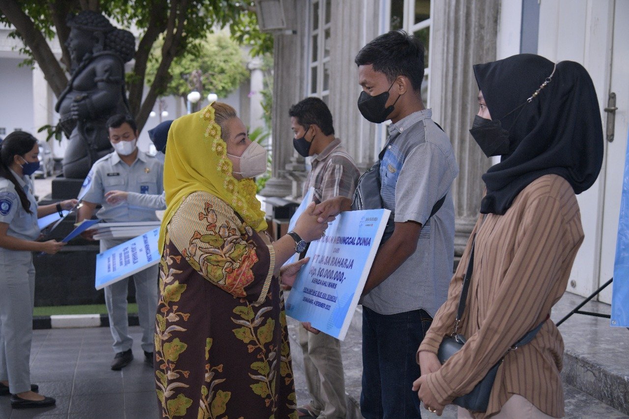 JATENGPOS.CO.ID,  SEMARANG – Pemerintah Kota Semarang bersama PT. Jasa Raharja bergerak cepat dalam memberikan perhatian kepada keluarga korban kecelakaan bus yang terjadi di Magetan,  dengan menyalurkan santunan kematian bagi mereka di Lobby kantor wali kota Semarang, Senin (5/12) sore. Penyerahan santunan dilakukan oleh Pelaksana tugas atau Plt. Wali kota Semarang, Hevearita Gunaryanti Rahayu bersama dengan Direktur Operasional PT. Jasa Raharja yang disaksikan oleh ahli waris, camat, dan perwakilan OPD Pemerintah Kota Semarang.