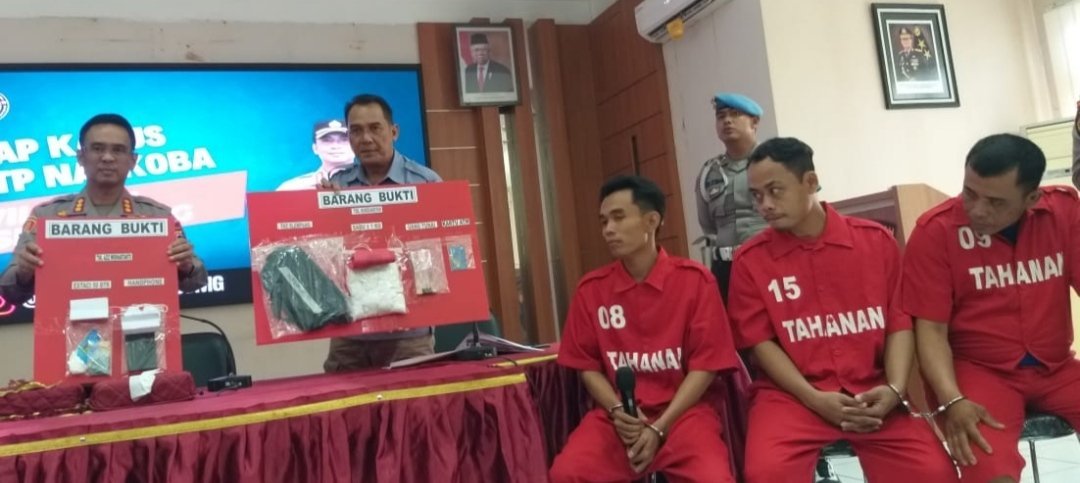 Dalam ungkap kasus tersebut, juga menghadirkan tiga tersangka dengan barang bukti (BB) masing – masing yakni Sabu seberat 2 Kg dan 1 Kg serta 50 pil ektasi yang terjadi di tiga tempat perkara berbeda.