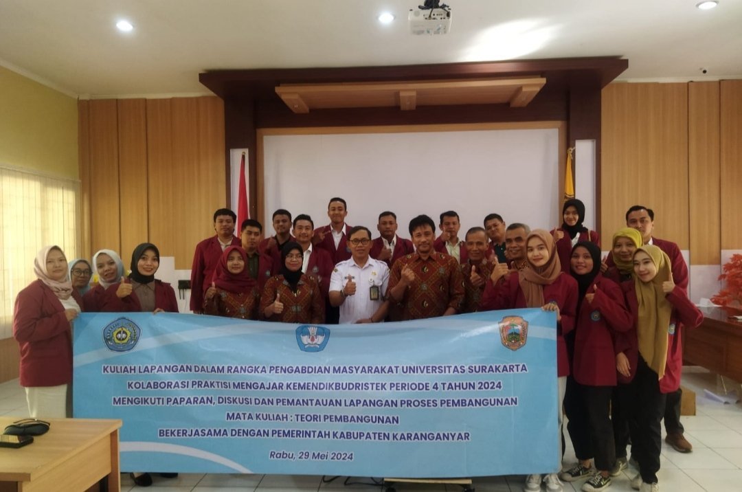 Ditambahkan Dosen Pengampu, Dr. Samsi mengatakan, pembelajaran ini merupakan kolaborasi kuliah praktisi mengajar yang difasilitasi Kementerian Pendidikan dan Kebudayaan Pusat. Pihaknya menggandeng dosen praktisi dari pejabat Karanganyar yakni Dr. Agung Respati dan Drs. Sujarno, M.Si yang merupakan mantan pejabat Karanganyar.