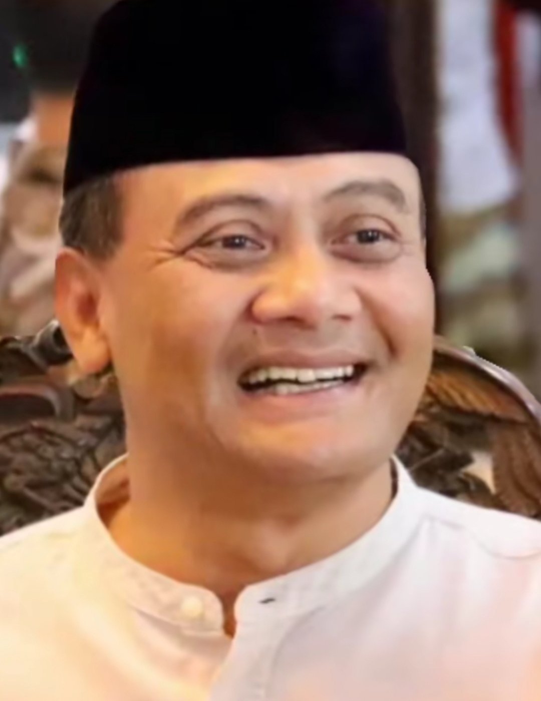 Ahmad Luthfi yang tahu para hadirin akan tertawa, juga spontan memberi isyarat telunjuk jari menempel di mulut saat mengatakan status duda.