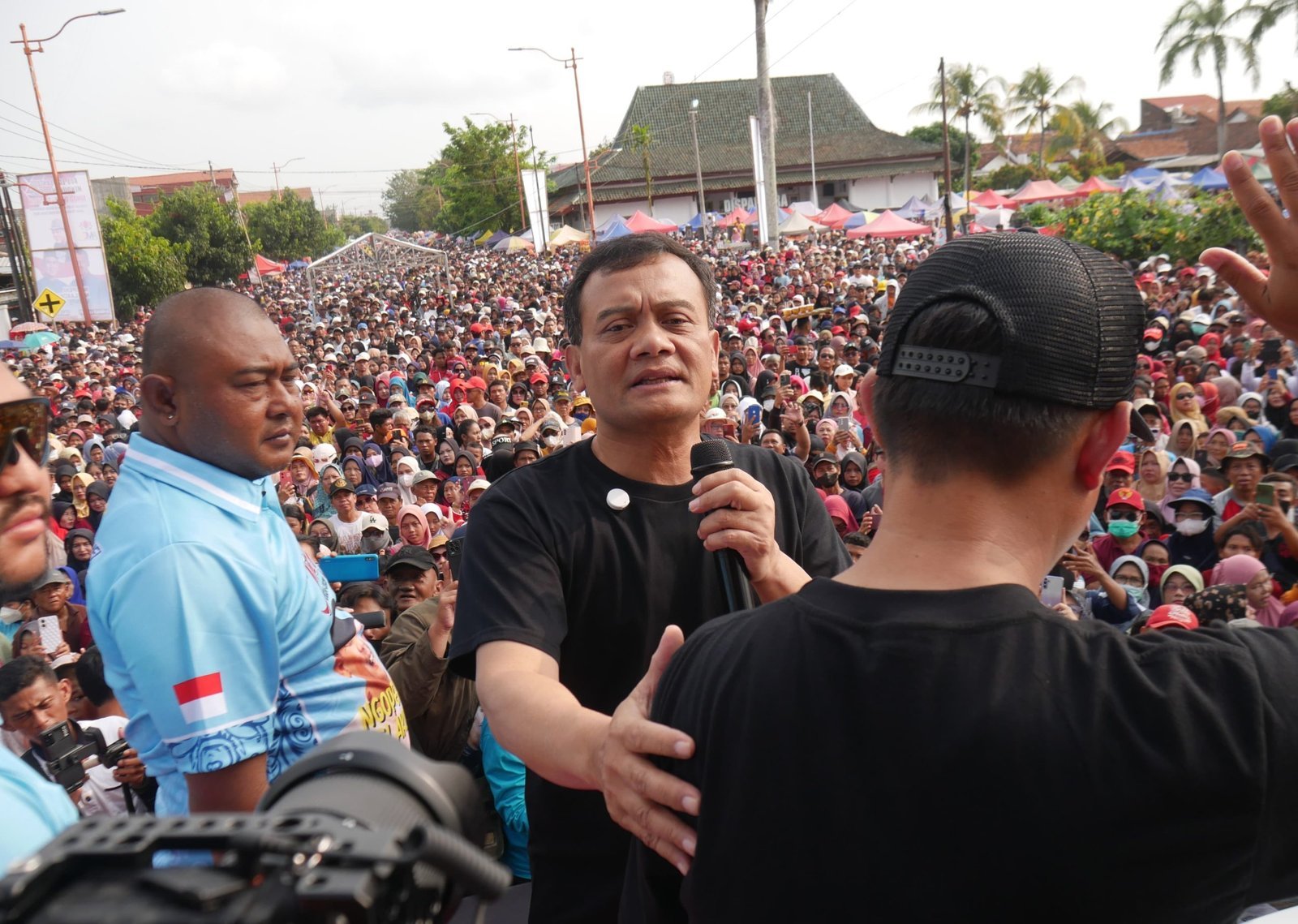 Yel-yel itu berlangsung beberapa saat sambil menunggu mantan Kapolda Jateng itu naik panggung utama. Kenyataanya, ia kesulitan menuju panggung karena padatnya lokasi oleh warga. Semua warga yang dilewati juga berebut untuk menyapa dan berfoto.