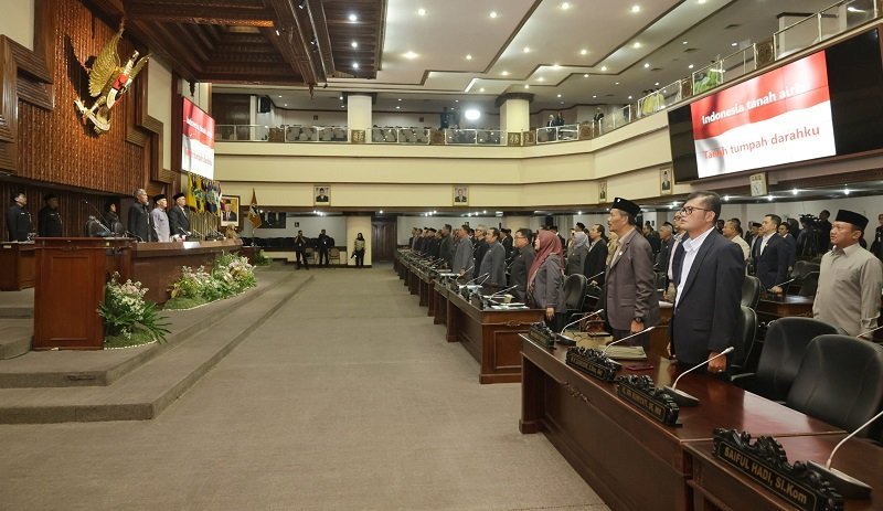 “Berdasarkan laporan Saudara Sekretaris Dewan, Anggota DPRD yang hadir fisik sejumlah 86 orang dari 120 orang Anggota Dewan. Sesuai ketentuan Pasal 141 ayat 1 huruf B Peraturan DPRD tentang Tata Tertib bahwa Rapat Paripurna ini telah memenuhi kuorum,” kata Sumanto.
