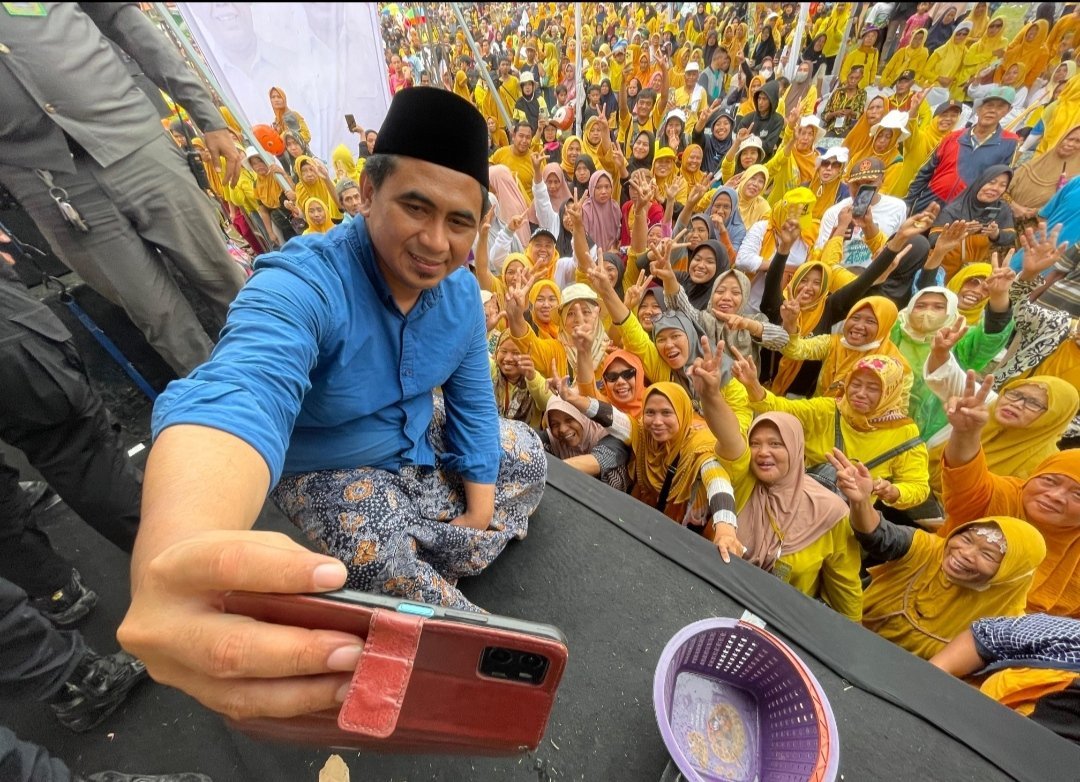 “Ini banyak sekali pelaku UMKM di sini. Kami paslon 2 Luthfi-Yasin juga punya program pengembangan UMKM. Nanti kita tata, kita bantu modal supaya maju,” tambahnya disambut riuh tepuk tangan.