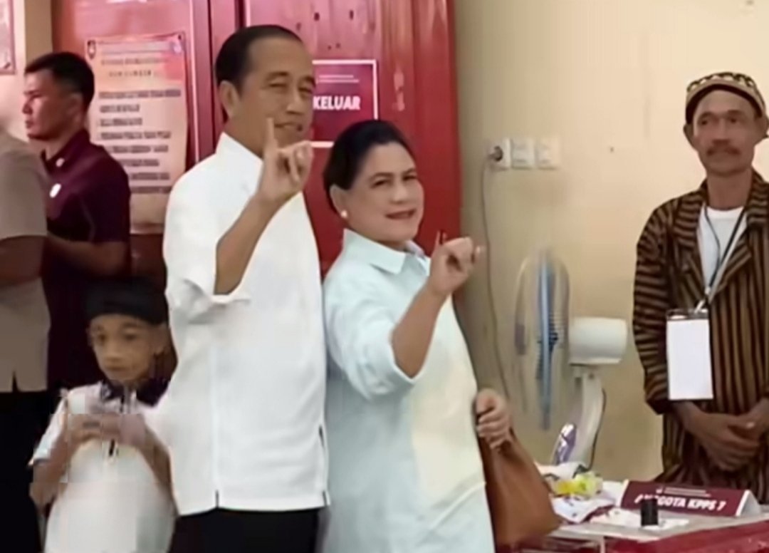 Jokowi, dengan nomor urut 217 dalam Daftar Pemilih Tetap (DPT), sedangkan Iriana dengan nomor urut 199, langsung menggunakan hak pilihnya hanya lima menit di bilik suara lalu memasukkan surat suara dalam kotak.
