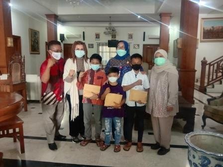 Santunan biaya pendidikan dan peralatan sekolah diserahkan Puan melalui Diah Pitaloka, wakil Ketua Komisi 8 DPR-RI, disaksikan Bupati Sragen Kusdinar Untung Yuni Sukowati, di Sragen, Selasa (3/8/2021).